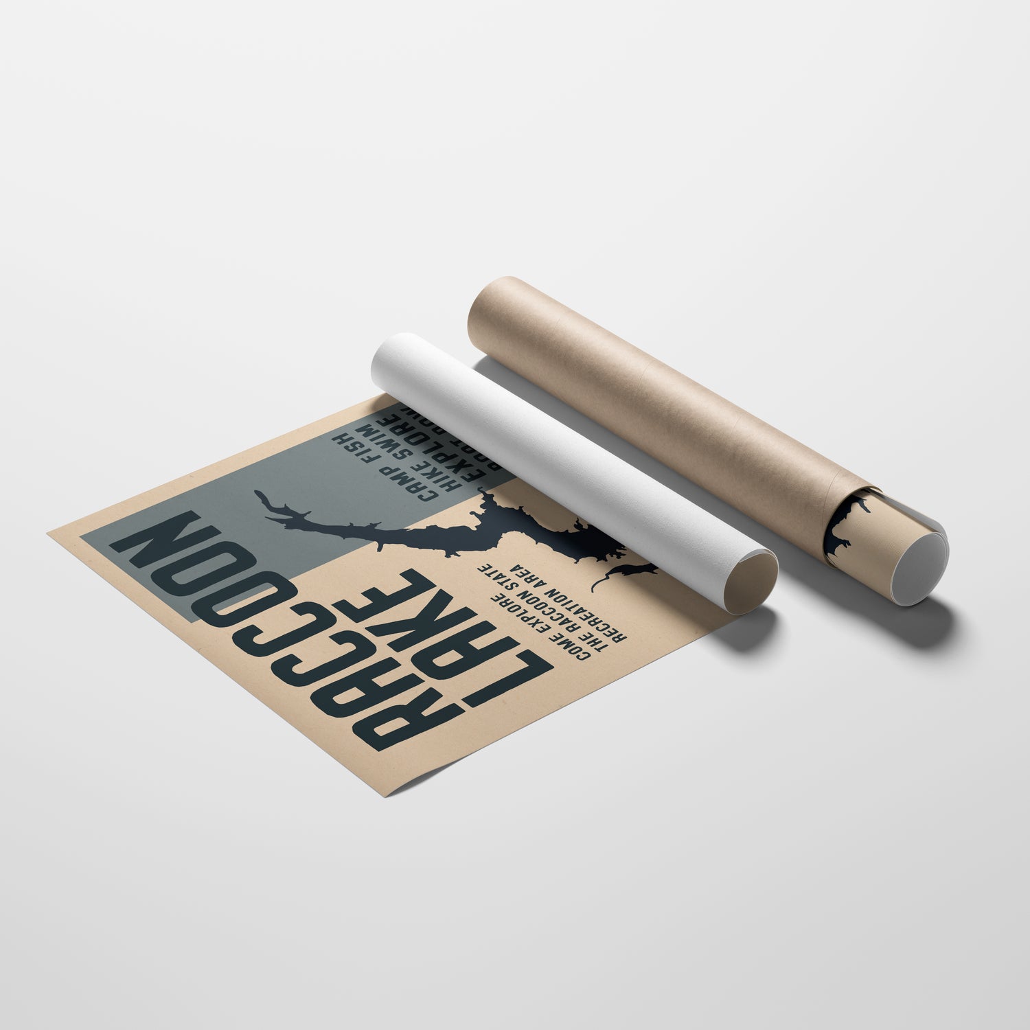 Hand drawn travel poster of Raccoon Lake Travel Poster printed on beautiful matte paper.
